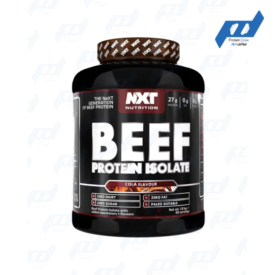 Get powerful nutritional support with Next Nutrition Beef Protein Isolate 1.8 kg. This high-quality formula, derived from beef, is rich in protein and lactose and gluten-free, making it ideal for building muscle and improving performance without the fat or sugar.